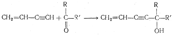 Винилацетилен легко конденсируется с кетонами под влиянием едкого кали, давая винилацетиленовые спирты (И. Н. Назаров) :