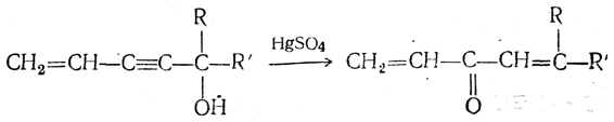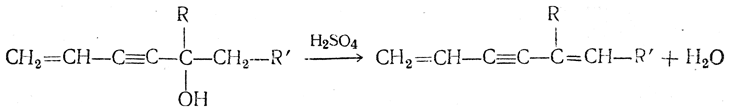 Эти спирты (винилэтинилкарбинолы), как показали работы И. Н. Назарова, способны к целому ряду интересных превращений. Например, при действии разбавленной серной кислоты они превращаются в дивинилацетилены