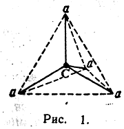 В 1874 г. французский ученый Ле-Бель (1847—1930) и голландский ученый Вант-Гофф (1852—1911), независимо друг от друга, высказали предположение, что четыре атома или радикала, связанные с углеродным атомом, расположены не в одной плоскости, а в пространстве по углам тетраэдра, в центре которого находится углеродный атом. Пространствен ное расположение четырех атомов вокруг атома углерода изображено на рис. 1. Если заменить любой из четырех атомов а каким-либо иным атомом b, то получатся пространственные фигуры, которые после вращения в пространстве при наложении совпадают друг с другом, а следовательно, изображаемые этими фигурами молекулы тождественны между собой. То же будет происходить при замещении любого второго атома а атомом с. Но при замещении одного из двух оставшихся незамещенными атомов а на атом d возможны два различных пространственных расположения, изображаемых в перспективе фигурами рис. 2 и 3.