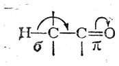 сопряжение σ- и π-связей выражено ярче вследствие более высокой электроотрицательности кислородного атома по сравнению с атомом углерода. Так, хорошо известна значительная реакционная способность атомов водорода, связанных с α-углеродным атомом в молекулах альдегидов, кетонов и сложных эфиров. Если в сопряженной системе