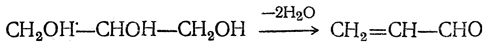 Простейшим из альдегидов этиленового ряда является акролеин СН2=СН—СНО. Он получается действием водоотнимающих средств — кислого сульфата калия KHSO4, борной кислоты, безводного сульфата магния и др. на глицерин согласно уравнению