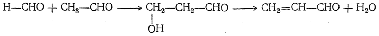 Синтетически акролеин можно получать альдольной конденсацией формальдегида с ацетальдегидом при 300° С:
