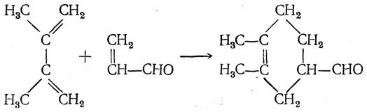 Например, акролеин присоединяется к 2,3-диметилбутадиену с образованием тетрагидродиметилбензальдегида: