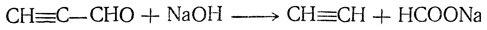 таля акролеина СН2=СН—CH(OC2H5)2 присоединением брома и отнятием спиртовой щелочью от получающегося при этом соединения СН2Вr—СНВr—СН(ОС2Н5)2 двух молекул бромистого водорода. Из ацеталя СН≡С—СН(ОС2Н5)2 сам альдегид можно выделить нагреванием с разбавленной серной кислотой. Пропаргиловый альдегид — жидкость с едким запахом, кипящая при 60° С. При действии едких щелочей он немедленно распадается на ацетилен и формиат натрия: