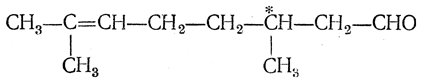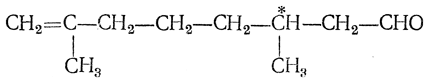 Альдегиды душистых эфирных масел В цитронелловом масле (масло из Andropogon nardus) содержится около 30% альдегида, называемого цитронеллалем. Он содержится также в некоторых сортах эвкалиптового масла, в лимонном и мелисовом маслах. Цитронеллаль кипит при 204° С; вращает вправо плоскость поляризации. Восстановлением его получается спирт цитронеллол, окислением — цитронелловая кислота. Исследование продуктов его окисления показало, что он представляет собой смесь двух альдегидов, содержащих асимметрический атом углерода. Один из альдегидов имеет строение