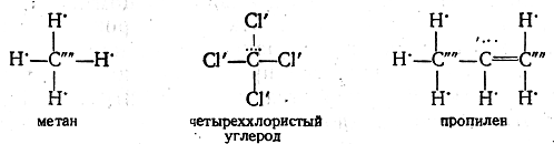 В метане атом углерода проявляет полностью свою отрицательную, а в четыреххлористом углероде — положительную валентность. В пропилене центральный атом углерода проявляет смешанную валентность, будучи в целом положительно заряженным.