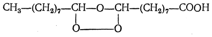 При действии озона на олеиновую кислоту получается продукт присоединения (озонид) строения