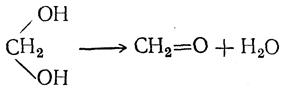 Еще менее прочны другие двухатомные спирты, у которых оба гидроксила находятся при одном и том же атоме углерода. В момент образования они также выделяют воду, превращаясь в соответствующие альдегиды или кетоны, например: