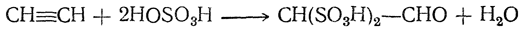 При действии дымящей серной кислоты или серного ангидрида на простейшие соединения жирного ряда, например на ацетамид, ацетонитрил или диэтилсульфат, часто образуется метионовая кислота, или метандисульфокислота, CH2(SO3H)2. Особенно просто получается она из ацетилена; ацетилен легко поглощается серной кислотой, причем получается ацетальдегиддисульфокислота