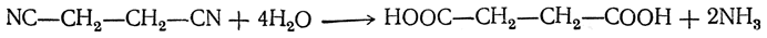 2. Омыление динитрилов. Так, например, цианистый этилен при омылении дает янтарную кислоту: