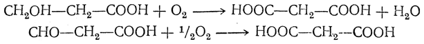 Примерами реакций второго типа являются следующие. 3. Окисление оксикислот с первичноспиртовой группой или альдегидокислот: