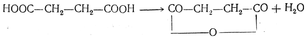 2. Образование циклических производных. Янтарная кислота при нагревании легко теряет молекулу воды с образованием циклического («внутреннего») ангидрида: