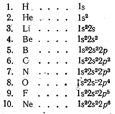 Следуя этому принципу, можно записать строение электронных оболочек атомов, составляющих два первых периода периодической системы Д. И. Менделеева, следующим образом: