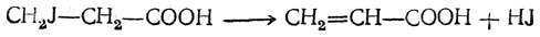 Под действием многих других реагентов от β-галоидкислот также в большинстве случаев отщепляется галоидоводород и лишь отчасти происходит замещение галоида на соответствующий радикал.