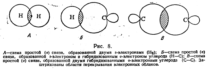 В случае простой связи (изображаемой одной валентной черточкой) максимальное перекрывание осуществляется по прямой, соединяющей два атома (рис. 8). Такая простая кова-лентная связь называется σ-связью, а электроны, ее образующие, — σ-электронами.