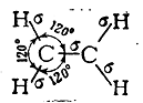 В молекуле этилена, как это установлено с помощью физических методов исследования, пять σ-связей расположены друг относительно друга под углом 120° и находятся в одной плоскости: