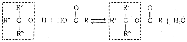 При сведении различных веществ на основании их взаимных превращений в один стерический ряд возникает вопрос, остается ли при химических реакциях конфигурация молекулы неизменной? Оказывается, что при всех превращениях, при которых не происходит разрыв связи у асимметрического атома, конфигурация молекулы всегда сохраняется. Например, при ацилировании спиртов, гидроксил которых присоединен к асимметрическому атому углерода, и при омылении образовавшихся сложных эфиров связь между атомом кислорода и асимметрическим углеродным атомом не разрывается, и потому изменения конфигурации не происходит: