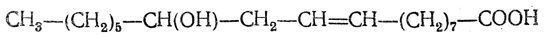 Рицинолевая (рицинолеиновая) кислота. Из ненасыщенных оксикислот с отдаленным от двойной связи гидроксилом представляет интерес кислота C18H34O3, глицерид которой составляет главную часть касторового масла. Эта кислота при обыкновенной температуре представляет собой маслообразную жидкость (т. пл. 4—5°С). Окисление этой кислоты, называемой рицинолевой, и другие ее реакции показывают, что она является оксиолеиновой кислотой строения