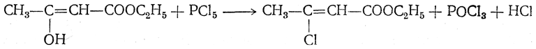 8. Действие пяти хлористого фосфора приводит к образованию β-хлоркротонового эфира: