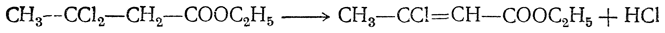 Образование хлоркротонового эфира может, однако, объясняться отщеплением хлористого водорода от продукта нормальной кетонной реакции — эфира β,β-дихлормасляной кислоты: