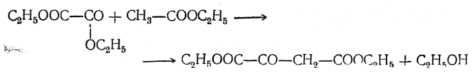 Щавелевоуксусная кислота НООС—СО—СН2—СООН. Ее эфир легко получается конденсацией эфира щавелевой кислоты с эфиром уксусной кислоты под влиянием алкоголята натрия: