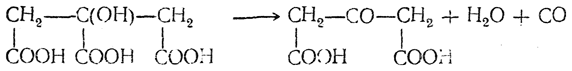 Ацетондикарбоновая кислота СО(СН2—СООН)2 легко получается действием серной кислоты на лимонную кислоту:
