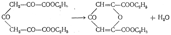 При пропускании в этот эфир хлористого водорода происходит отщепление воды и образование эфира гетероциклической кислоты, называемой хелидоновой кислотой.