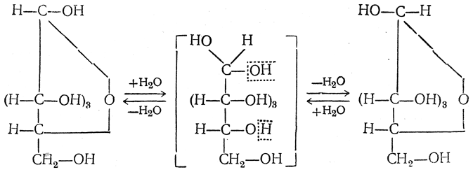Объяснение возможности взаимного превращения α- и β-форм сначала искали в промежуточном образовании гидратной формы моносахарида: