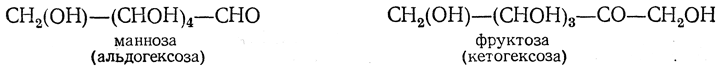 Окислением высших многоатомных спиртов могут получаться моносахариды, как альдозы, так и кетозы. Например, при окислении маннита получаются альдогексоза и кетогексоза: