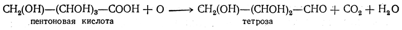 Так, окислением альдоновых кислот перекисью водорода в присутствии ацетата окисного железа можно получить монозу с меньшим на единицу числом атомов углерода в молекуле, например: