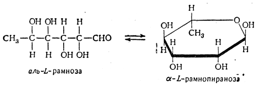 Довольно значительно распространена в растениях в виде гликозидов также рамноза, являющаяся одной из стереоизомерных метилпентоз: