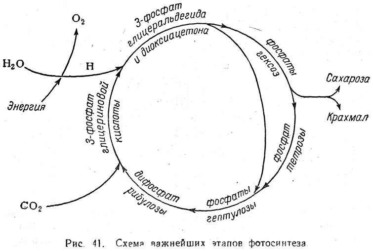 Основные этапы процесса фотосинтеза схематически показаны на рис. 41.