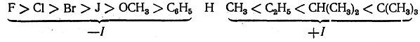 Изучение силы различных замещенных кислот позволяет расположить заместители по их индукционному эффекту в следующий ряд: