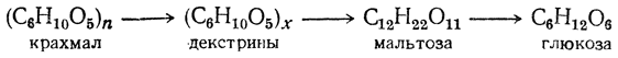 Схема постепенного гидролиза крахмала кислотным или ферментативным способом (действием карбогидраз) такова: