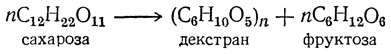 Декстран — высшая полиоза, образующаяся из сахарозы под влиянием Leuconostoc mesenteroides и некоторых других микроорганизмов при отщеплении фруктозы и соединении остатков глюкозы в полигликозидные цепи: