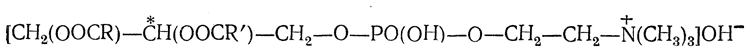 Лецитины обычно оптически деятельны. Если фосфорная кислота связана со средним углеродным атомом глицерина, то асимметрический атом углерода может появиться лишь при этерификации двумя различными жировыми кислотами: