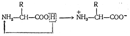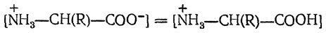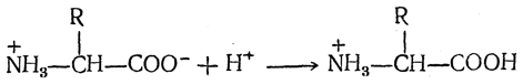 Водные растворы аминокислот имеют почти нейтральную реакцию (рН≈6,8). В сильнокислой среде биполярный ион аминокислоты превращается в катион