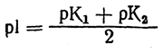Кроме величин pK1 и рК2, для каждой аминокислоты характерна определенная величина рН, при которой число катионов в растворе разно числу анионов. При этом значении рН, называемом изоэлектрической точкой и обозначаемом pI, максимальное количество аминокислоты в растворе находится в виде биполярных ионов. В изоэлектрической точке аминокислоты не двигаются под влиянием электрического поля. Для моноаминомонокарбоновых кислот величину рН в изоэлектрической точке можно определить из уравнения