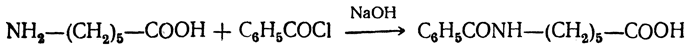 Гидролизом ε-капролактама получают ε-аминокапроновую кислоту, которую затем бензоилируют для защиты аминогруппы: