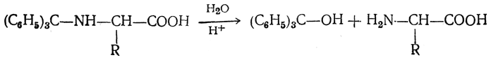 Трифенилметильный остаток легко отщепляется в кислой среде: