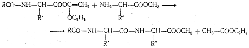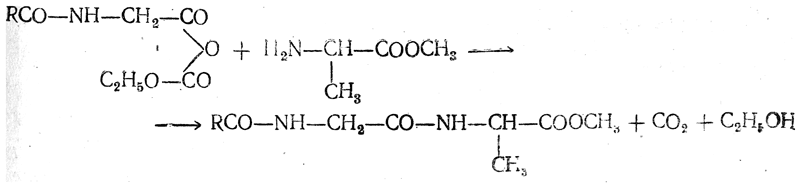2. Применение азидов. Азиды N-замещенных аминокислот (или пептидов) легко взаимодействуют с эфирами аминокислот и пептидов, образуя эфиры N-замещенных пептидов;