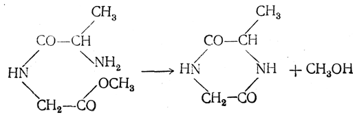 3. Получение из эфиров дипептидов. Эфиры дипептидов при нагревании также легко замыкаются в дикетопиперазины. Таким способом удается получить дикетопиперазины, состоящие из двух различных аминокислот: