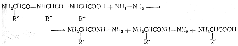 При нагревании пептида с безводным гидразином происходит расщепление всех пептидных связей, в результате чего в гидразиды превращаются все аминокислоты, кроме той, которая занимает С-концевое положение: