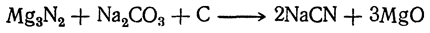 Цианистые соли могут быть легко получены из азотистого магния (нитрида магния) при накаливании его с содой и углем: