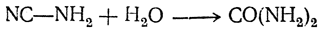 Цианамид образует бесцветные, расплывающиеся на воздухе кристаллы с т. пл. 41—42° С. Присоединяя воду в присутствии щелочей и кислот, цианамид дает мочевину
