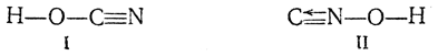 Для соединений радикалов циана —C≡N или изоциана C←=N— с гидроксилом возможны структурные формулы: