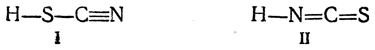 Аналогично двум таутомерным формам циановой кислоты можно представить и две формы тиоциановой кислоты: