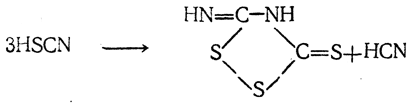 Безводный мономерный роданистый водород представляет собой газообразное вещество, затвердевающее при охлаждении жидким воздухом в белую кристаллическую массу, плавящуюся при —110° С. При —90° С роданистый водород, полимеризуясь, снова затвердевает. Устойчивый при этой температуре тример — родануровая кислота (HSCN)3 — окрашен в желтый цвет. Выше 0° полимеризация идет дальше с образованием красных и темно-бурых твердых веществ. В водных растворах роданистоводородная кислота более устойчива. Она является сильной кислотой, приближающейся по силе к соляной кислоте. Устойчивость этих растворов зависит от их концентрации.
