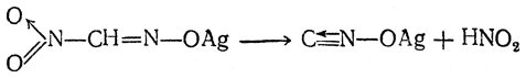 2. Еще легче образуется гремучее серебро из серебряной соли метилнитроловой кислоты с отщеплением азотистой кислоты: