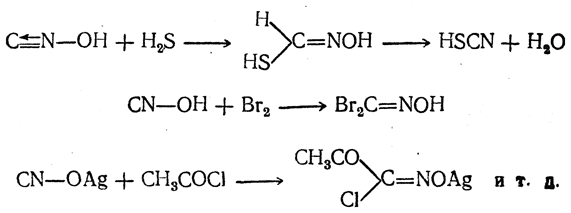 Механизм образования гремучей кислоты может быть представлен следующей схемой (Виланд):